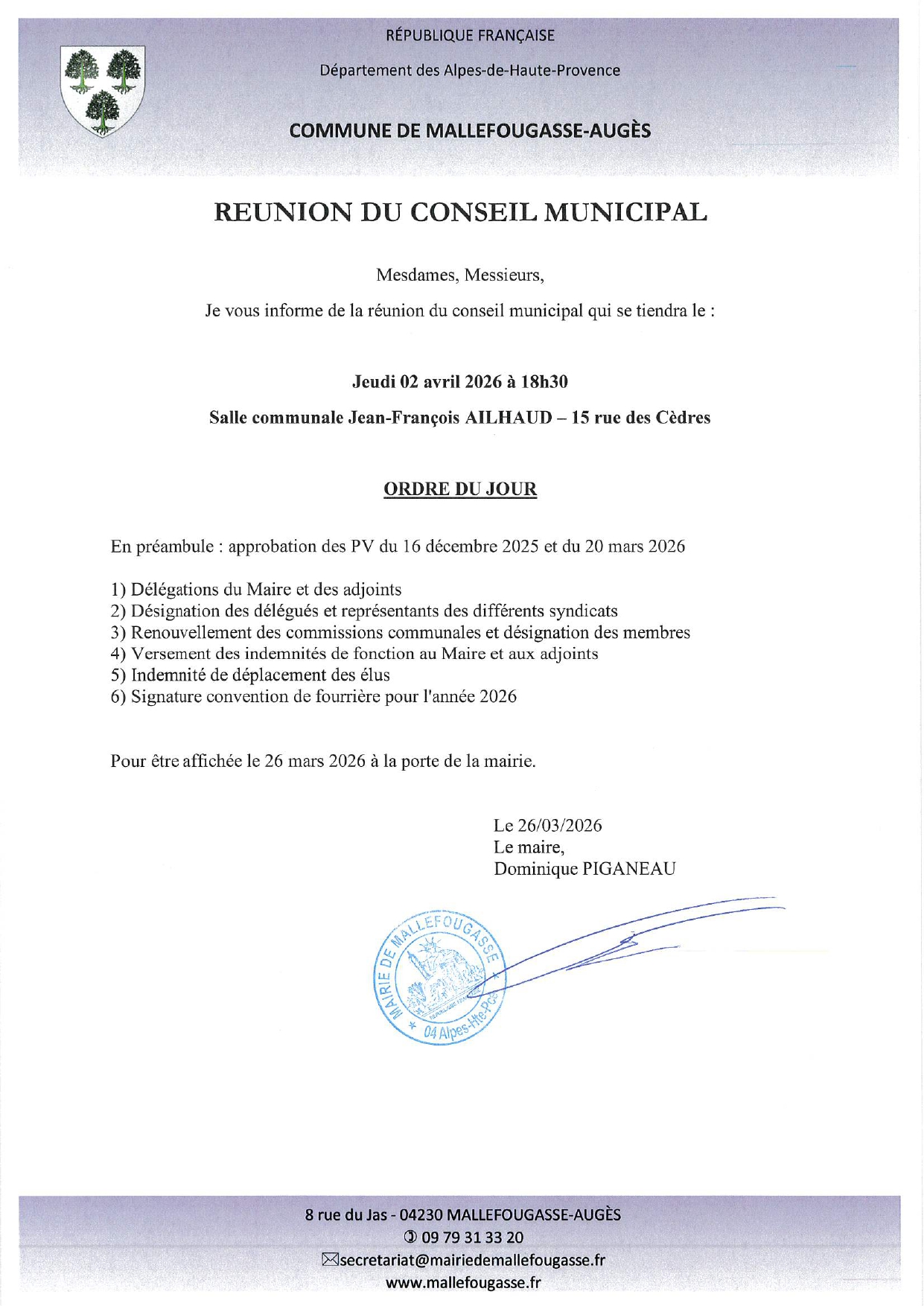 Le secrétariat de la mairie sera fermé tous les vendredis matin jusqu'au 31 mars 2026 inclus.